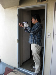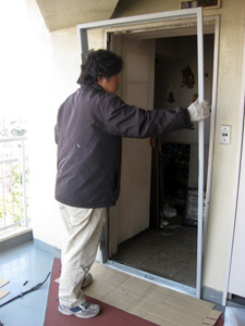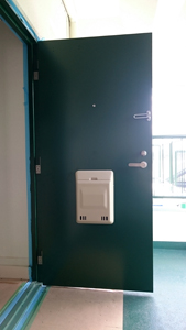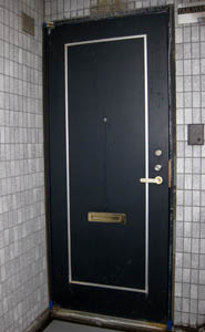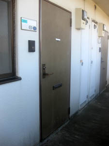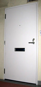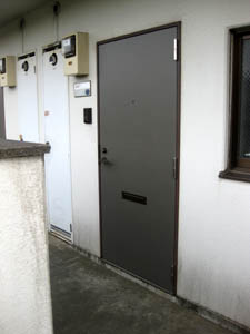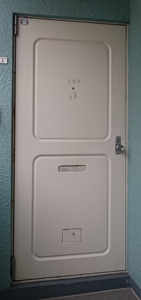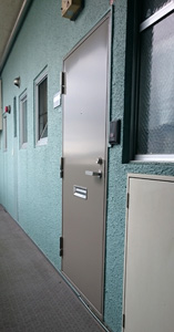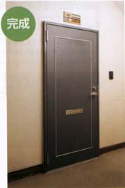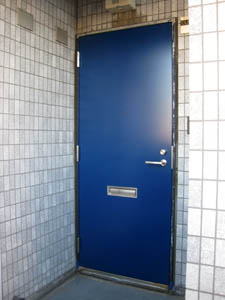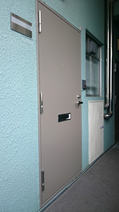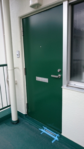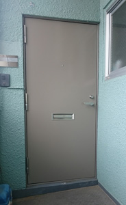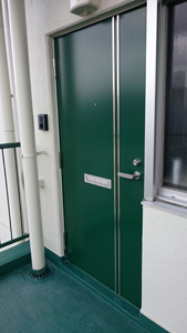 他の住民様への配慮で既存ドアと同色のアクリル系焼付け塗装で施工しました。