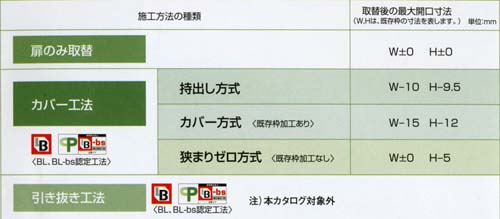 ・BL改修用玄関ドアの認定工法です。(一部工法を除く)