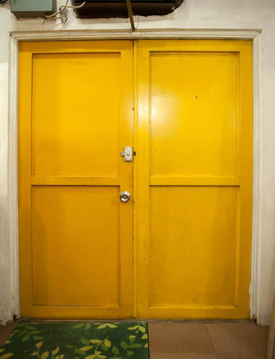 外用の鉄の扉は開けっ放しで、内側にドアを設置しました。